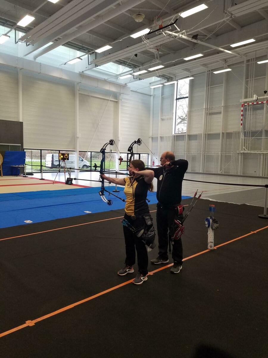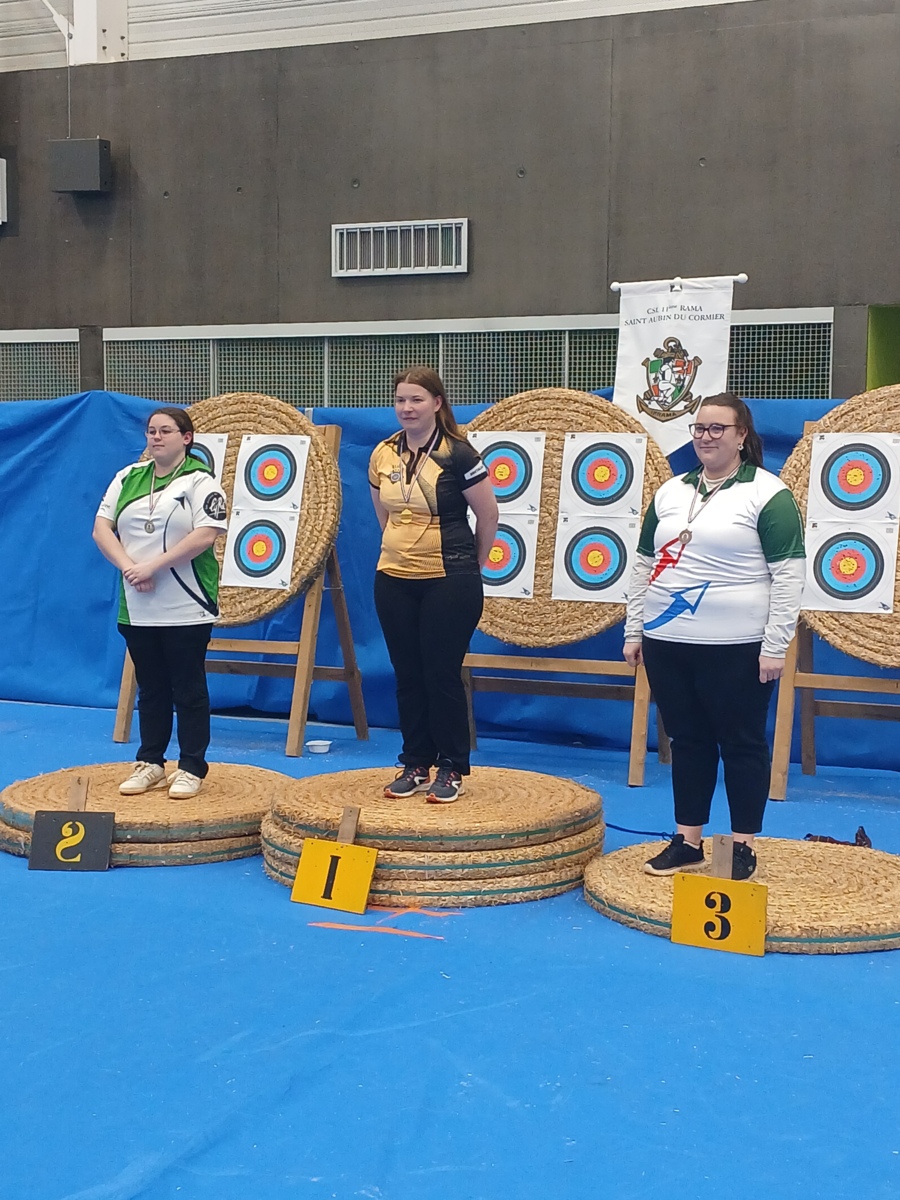 Et notre amie Nolwenn de Rennes 1ère en SF1 médaille d’or en arc à poulies 560 pts