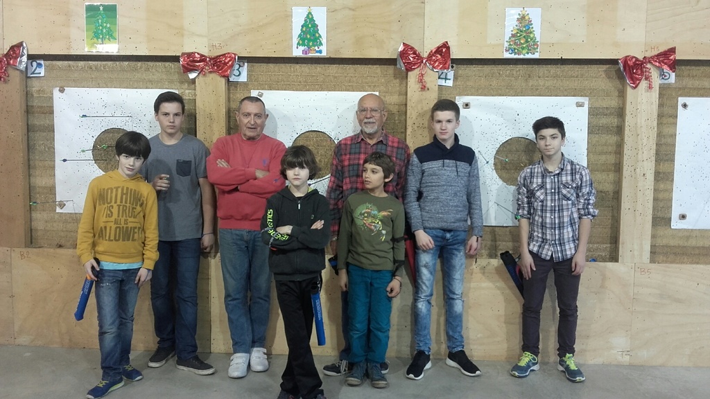 7 jeunes archers ont commencé le tir à l'arc au club de la Flèche d'Emeraude depuis septembre 2015 encadrés par Vincent, Paul et Alain.